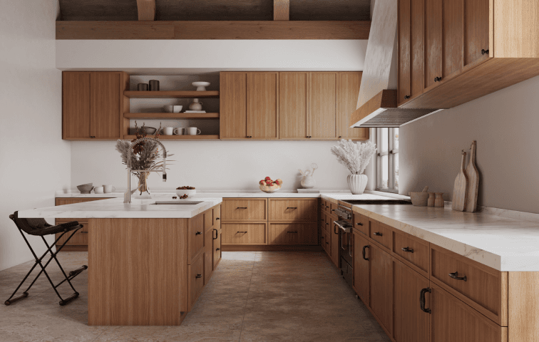 | ¾” solid eucalyptus grandis (mid-tone) | Recessed square wall & base |
